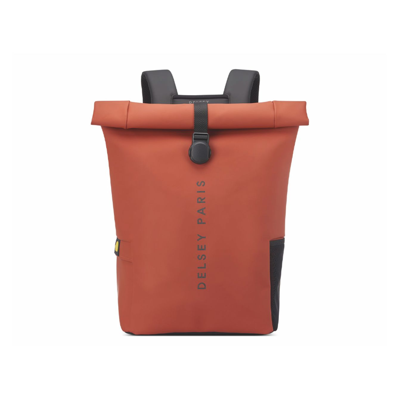 Zaino viaggio avvolgibile, realizzato con materiali ricicliati, protezione del PC, sistema di protezione RFID, compatibile con il sistema trolley. In PU riciclato. Dimensioni: cm 46x40x14 - 26 Litri