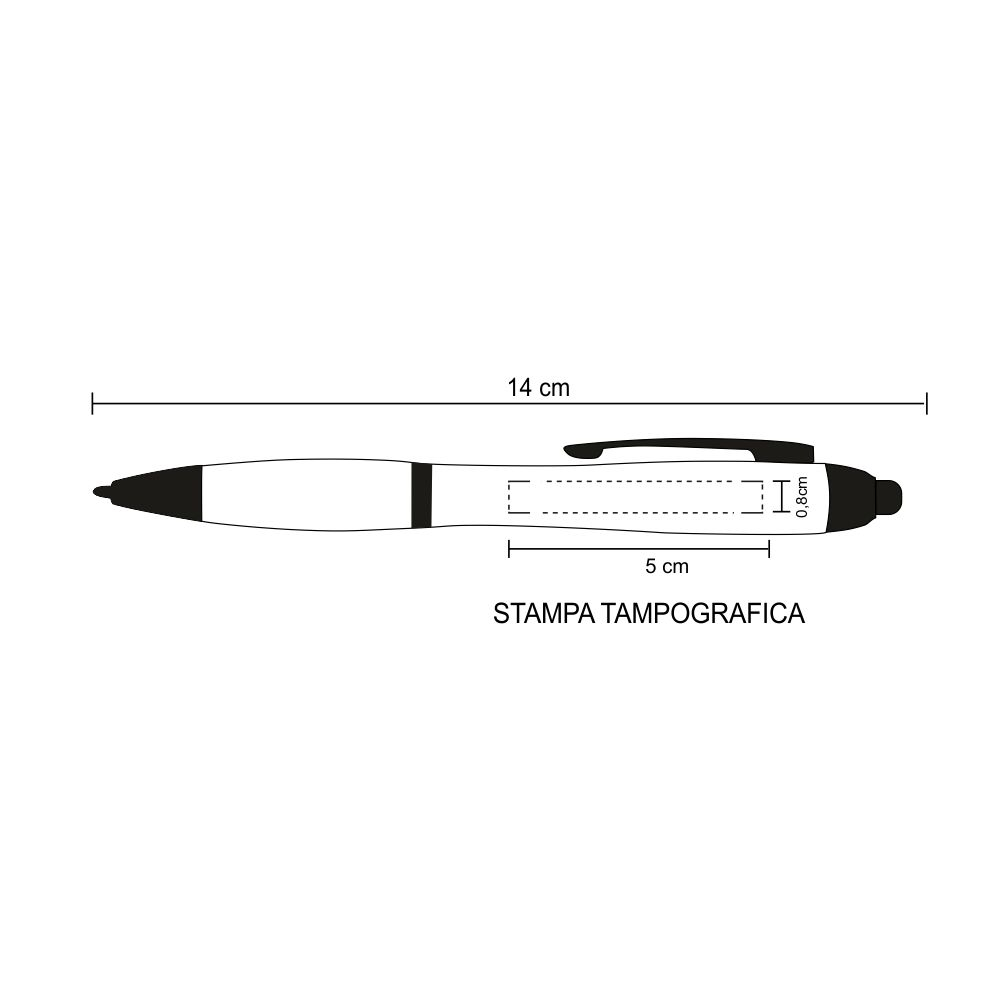 Touch pen a scatto rotante in plastica con clip in metallo. Refill nero. Colori: vedi catalogo/sito. Imballo: 1000xcolore