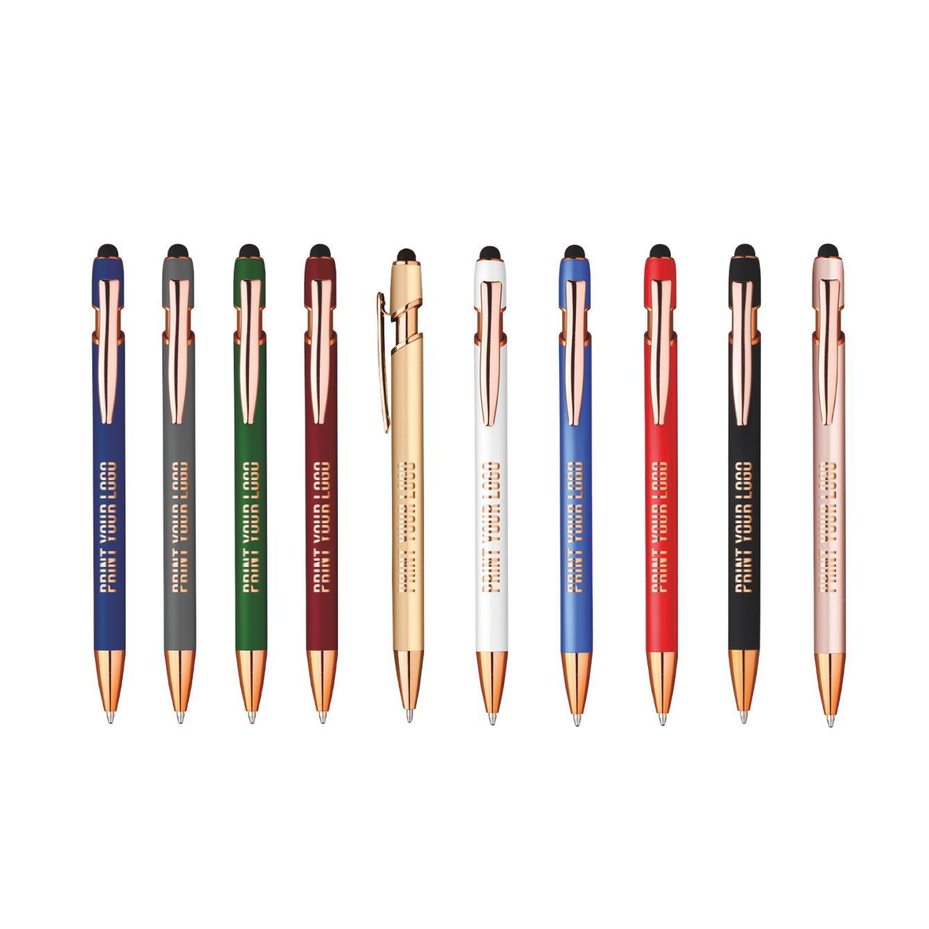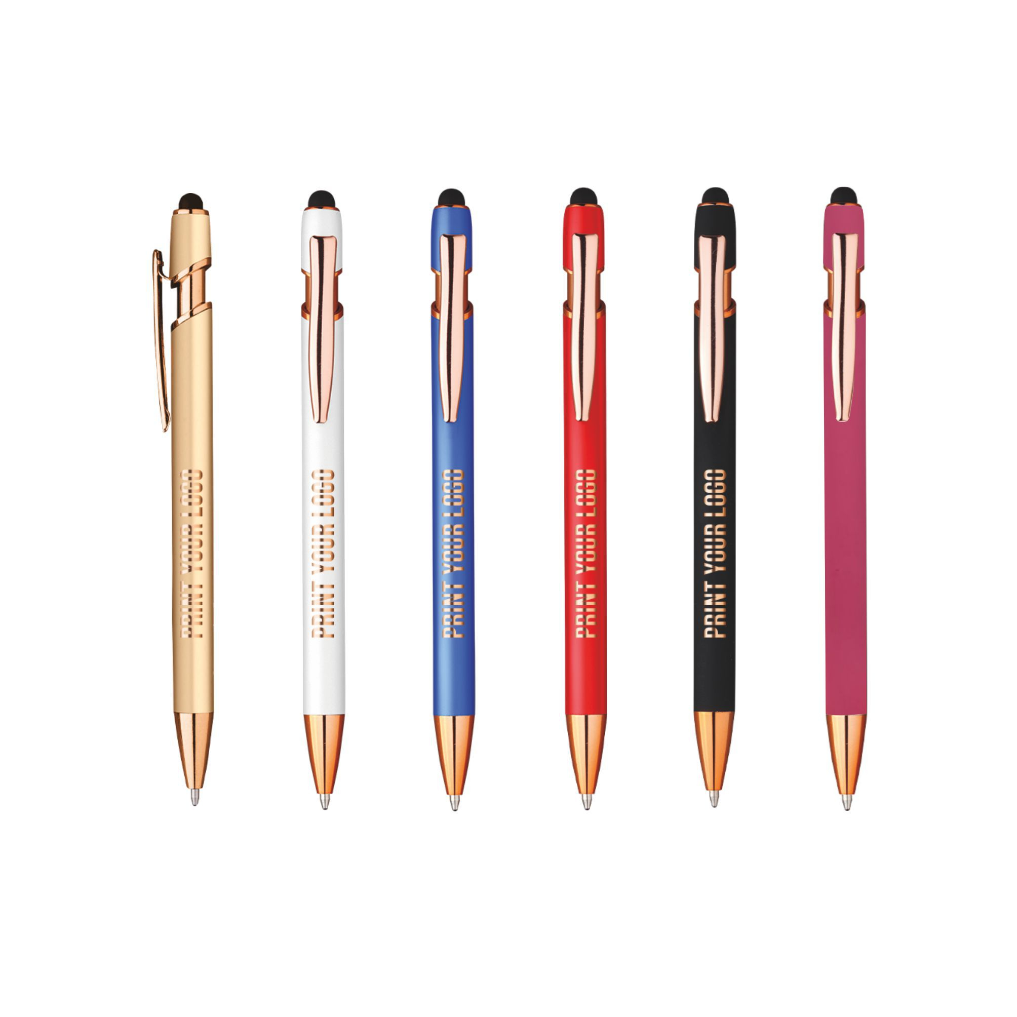 Penna in alluminio con finitura rubber con clip in alluminio. Con incisione laser sul fusto, il logo si mostrerà nel colore oro. Refill nero. Dimensioni: 14,5cm. Imballo: 500pz.