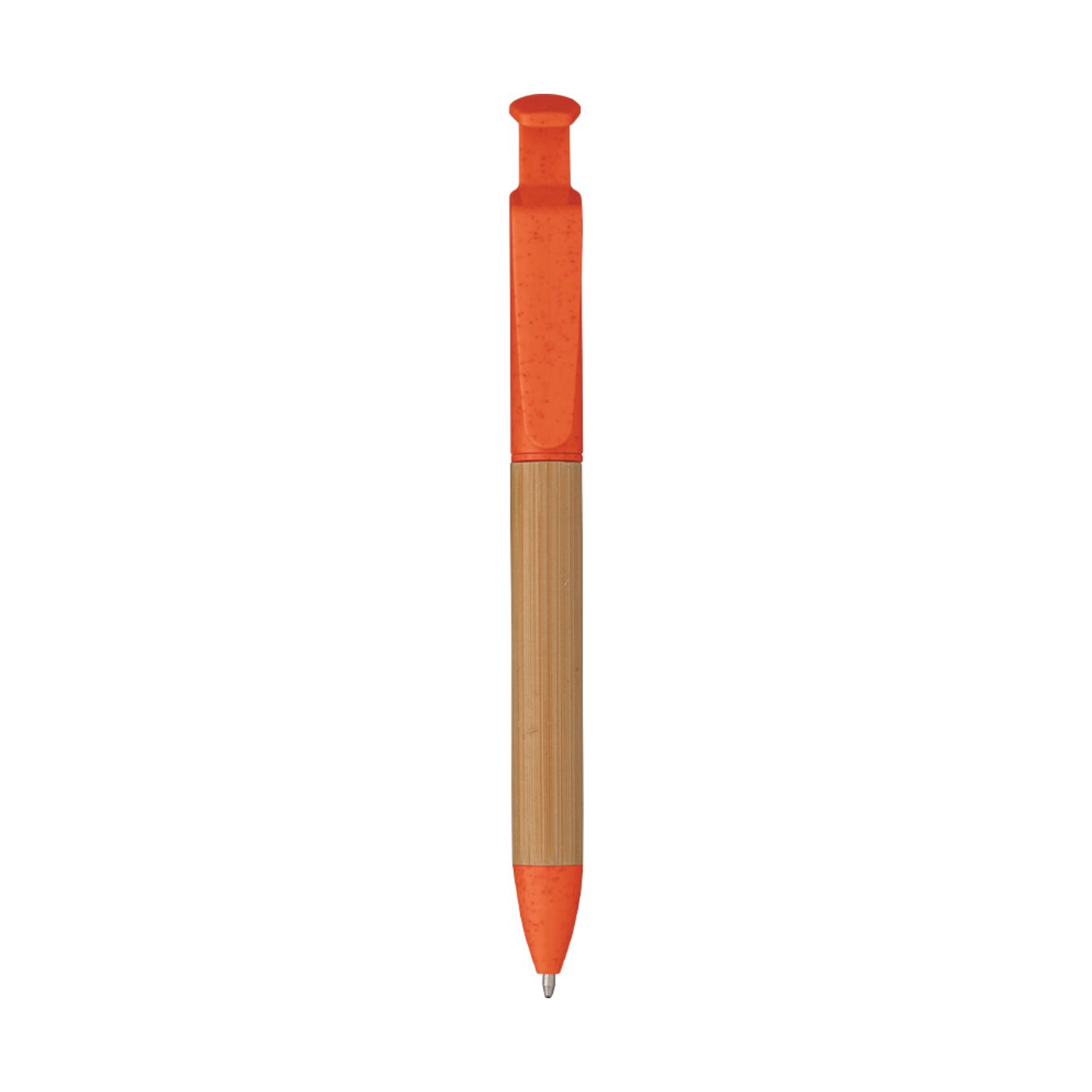 La penna Ariele unisce natura e funzionalità in un'unica soluzione. Realizzata in bamboo con clip in paglia di frumento, offre una scrittura fluida e confortevole. La clip funge anche da supporto per il cellulare. Il refill nero assicura una lunga durata.