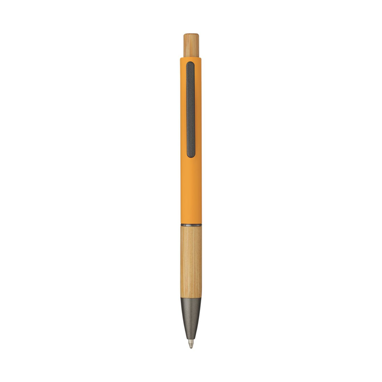 La penna sfera Eloisa unisce stile e natura in un'unica soluzione per scrivere con eleganza. Realizzata in alluminio con finitura in rubber e bamboo, offre una scrittura fluida e confortevole. La clip in alluminio garantisce una presa comoda e sicura. Il