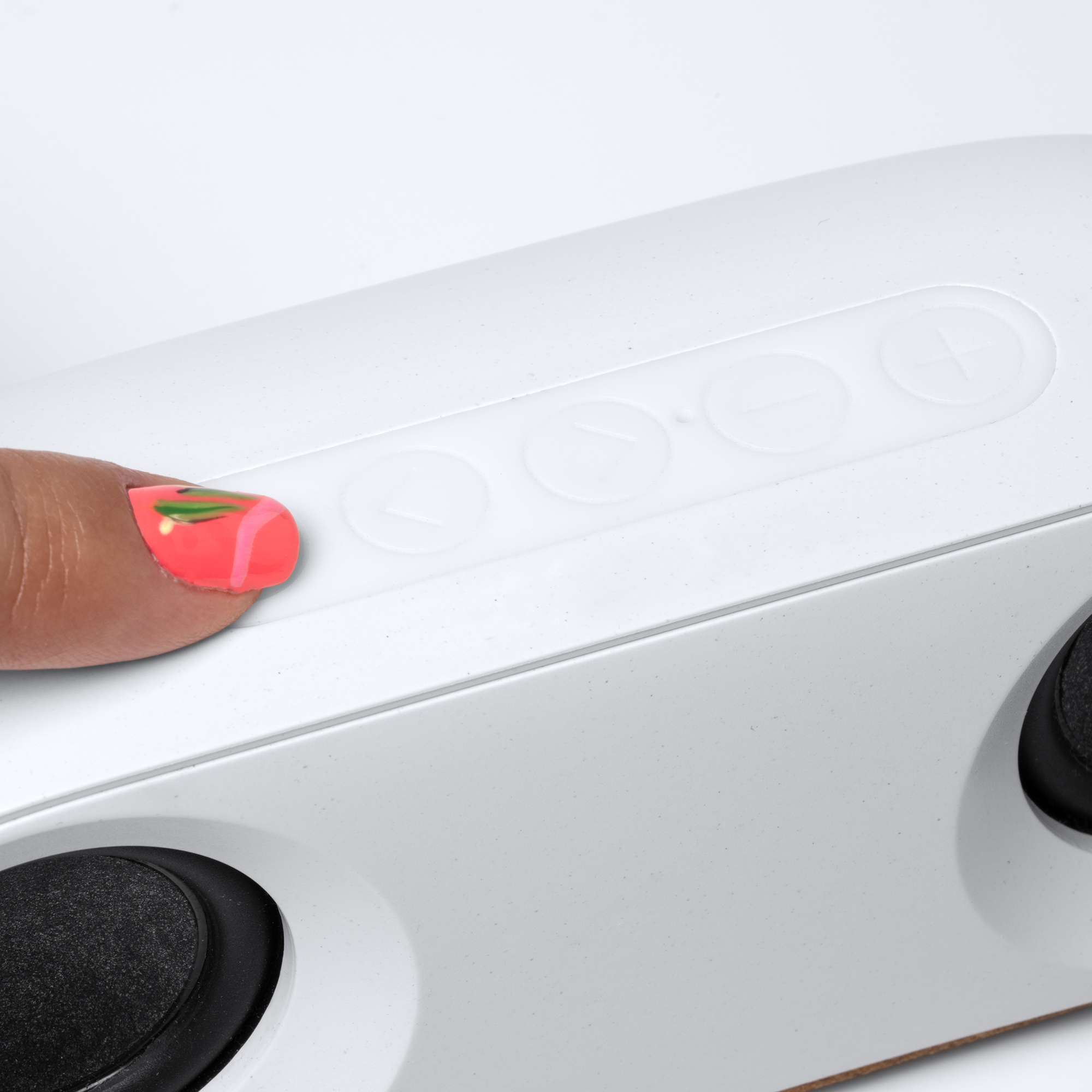 Cassa realizzata in ABS riciclato e sughero naturale. Dotata di batteria ricaricabile da 10w e funzione vivavoce, con cavo di collegamento incluso. In custodia dal design ecologico. Dimensioni: cm 16,6x6,5x6,4