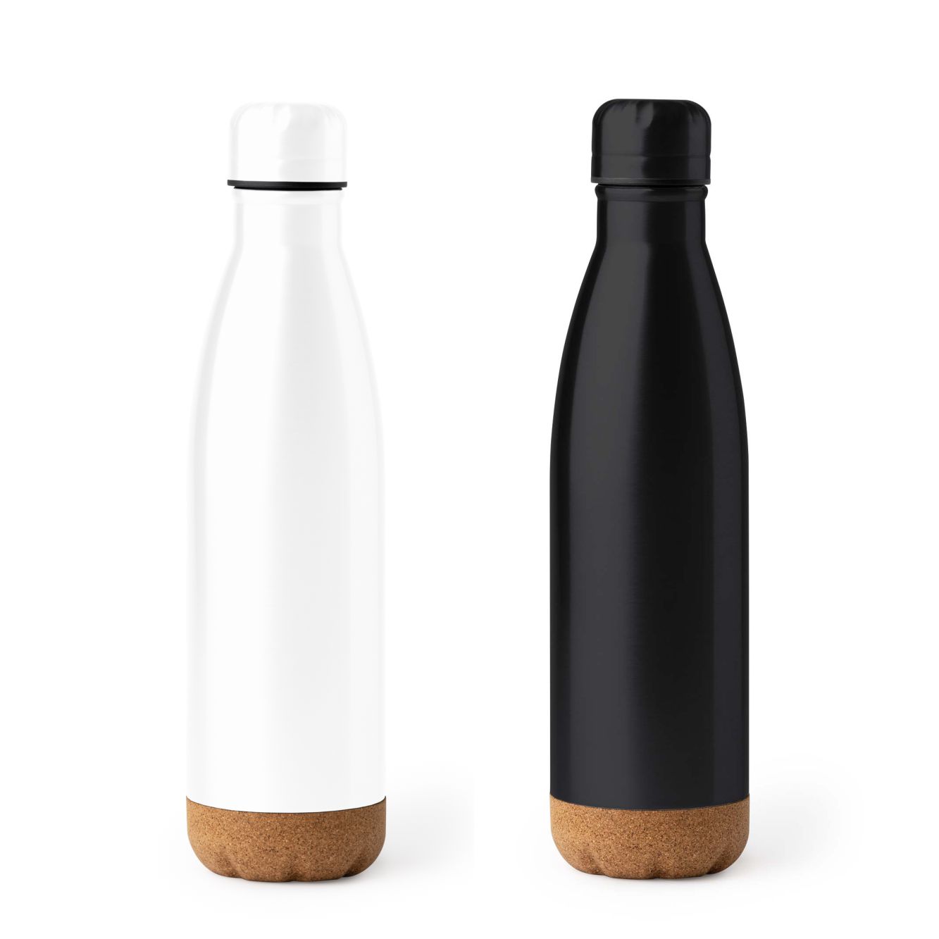 Borraccia Termica 500ml, in acciaio inox doppia parete e fondo in sughero. Dimensioni: cm. ø 7 H 26. Confezione in Astuccio. Imballo: 50pz.
