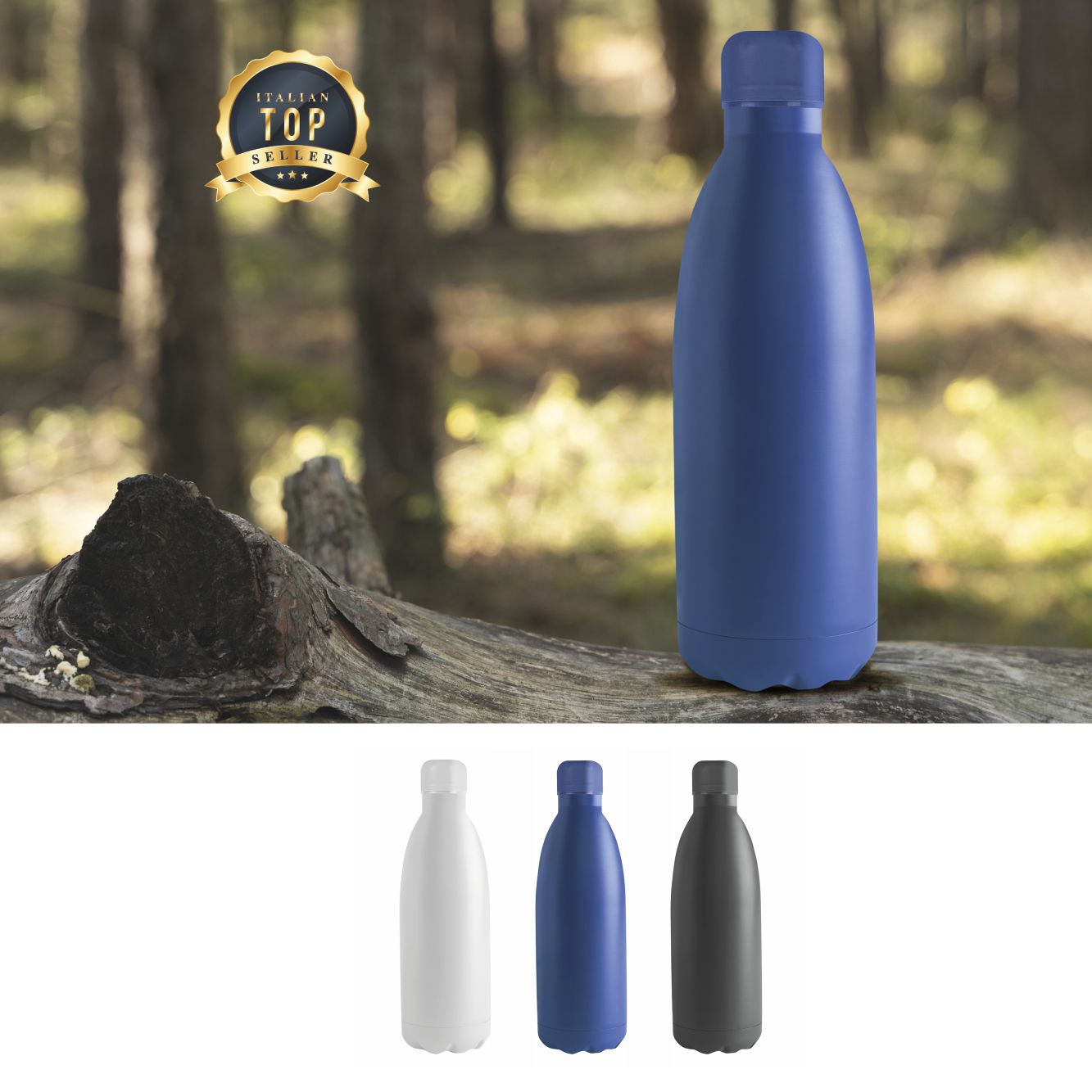 Borraccia Termica 1lt, in acciaio inox doppia parete. Dimensioni: cm. ø 8,5 H 33. Confezione in Astuccio. Imballo: 25pz.