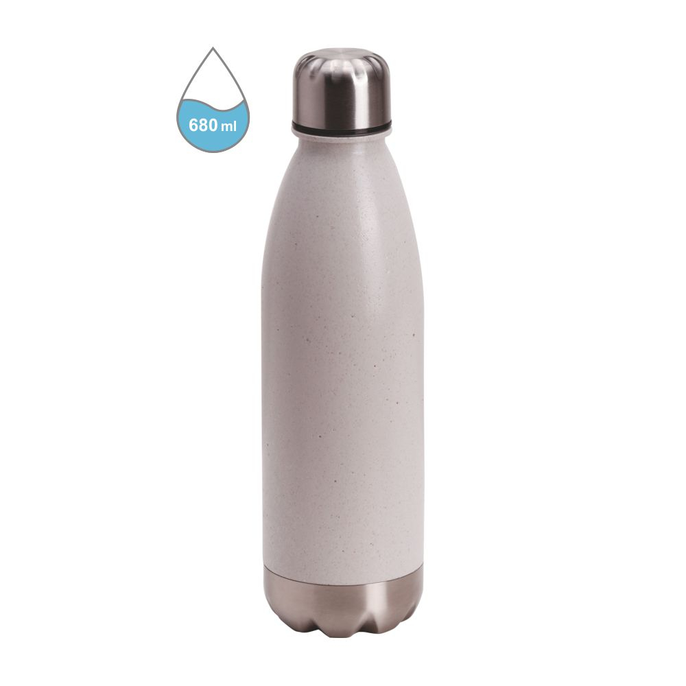 Borraccia capacità 680ml. Acciaio e paglia di frumento. Confezione in astuccio. Dimensioni Ø cm 7 h 25 Imballo: 50 -