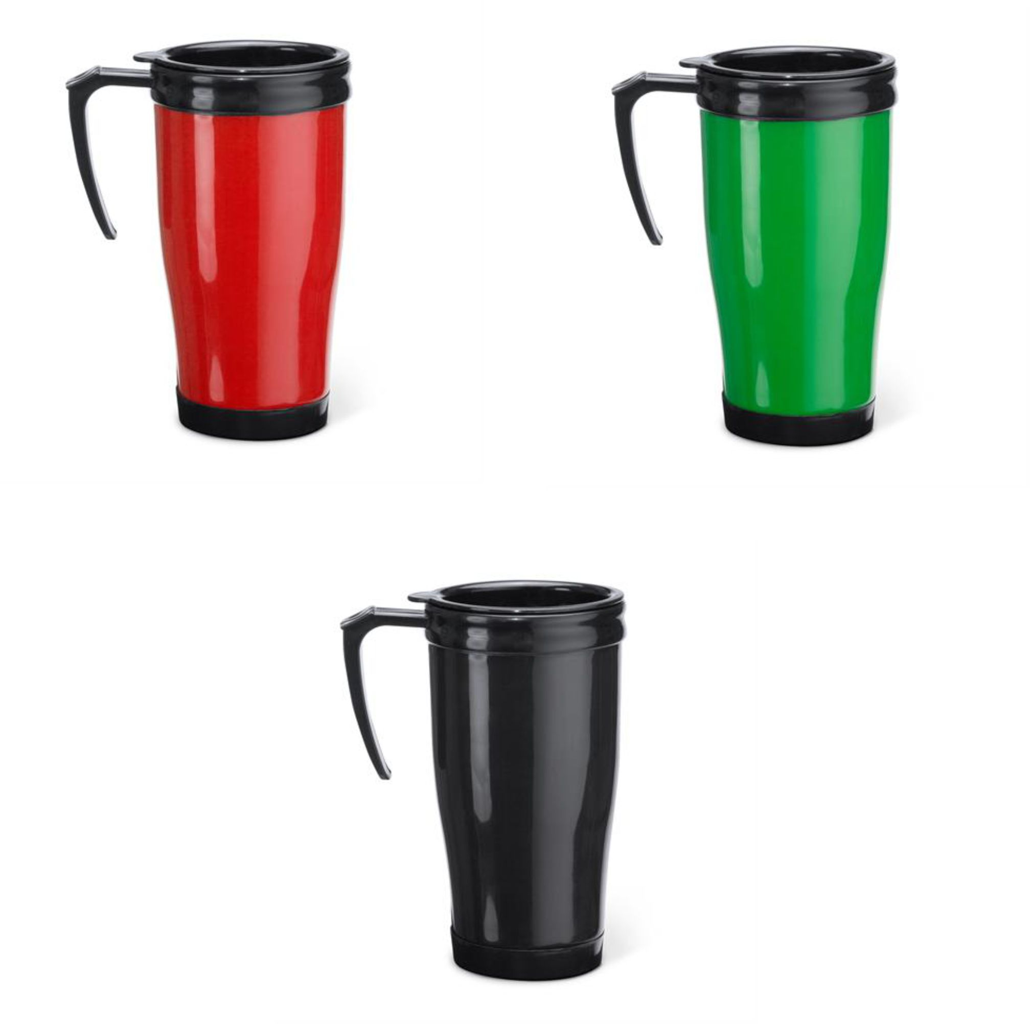Pratica tazza da trasporto in PP termico con coperchio. Corpo a colori. Capacità 470 ml. - -