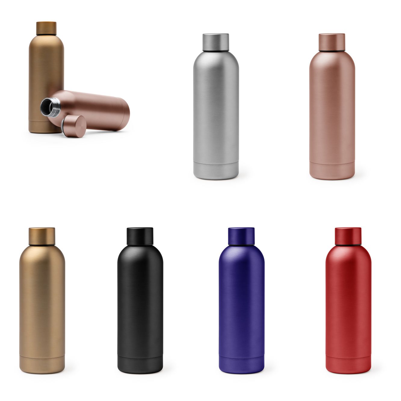 Borraccia Termica 550ml, in acciaio inox 304 doppia parete finitura satinata. Dimensioni: cm. ø 7 H 23. Confezione in Astuccio. Imballo: 30pz.