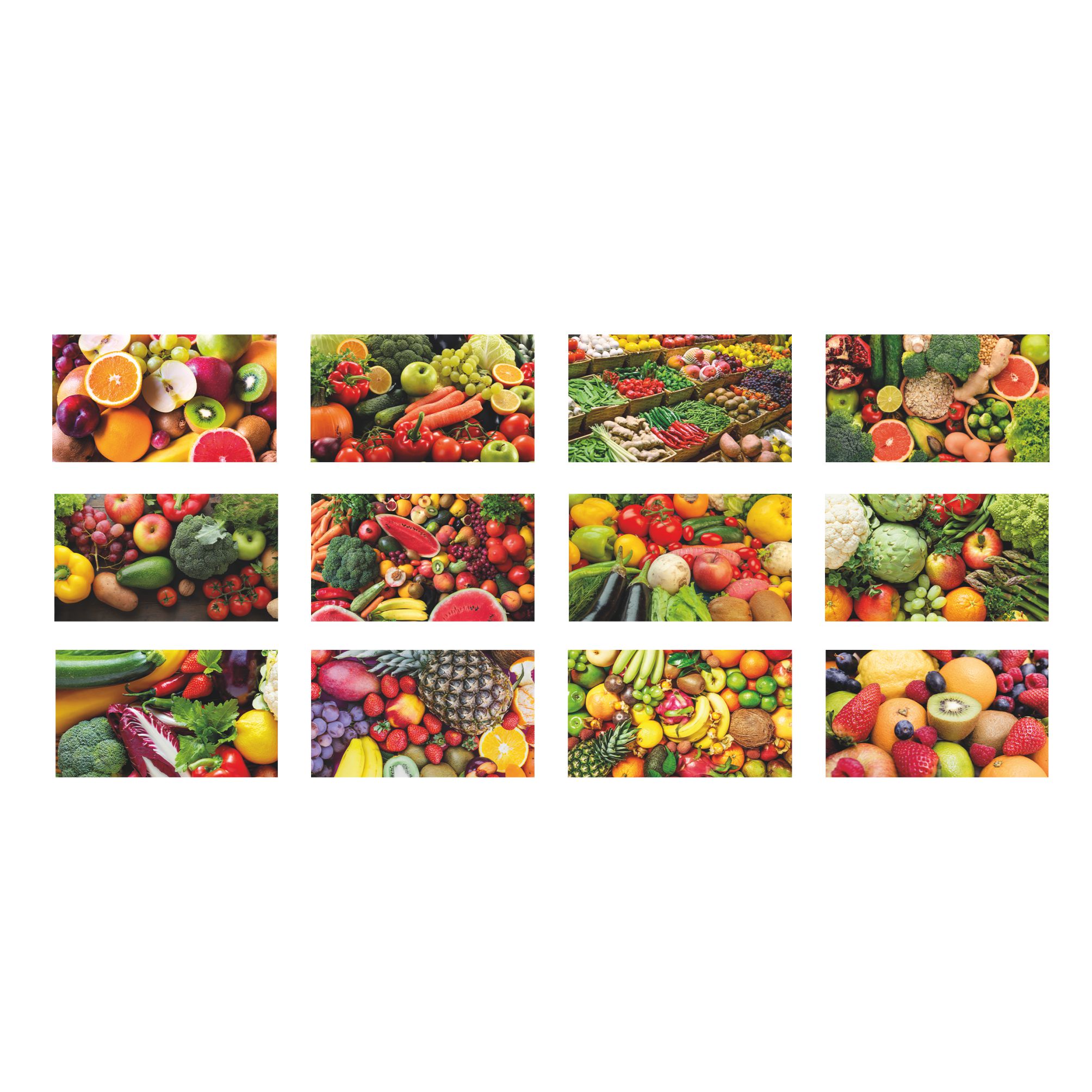 Calendario “Frutta e Ortaggi”. Mensile 12 fogli + retro. Testata pressofusa carta patinata. Dimensioni: cm 28,8x47, testata cm 28,8x9. Imballo: 100