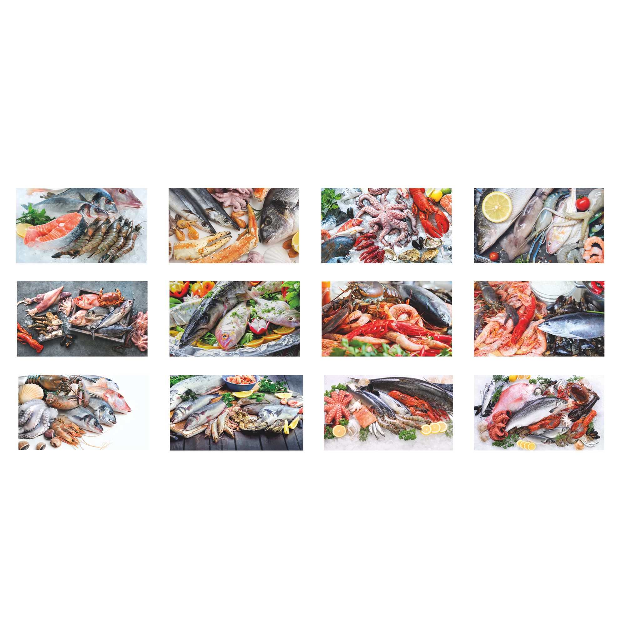 Calendario “Pesce”. Trimestrale 12 fogli. Carta patinata Testata pressofusa. Dimensioni: cm 28,8x47, testata cm 28,8x9. Imballo: 100