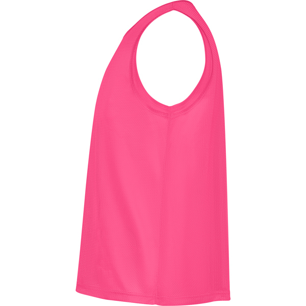 Pettorine sportive traspiranti unisex.· Bordo cucito con lo stesso tessuto del giromanica e sul collo. · Doppia cucitura sull'orlo.