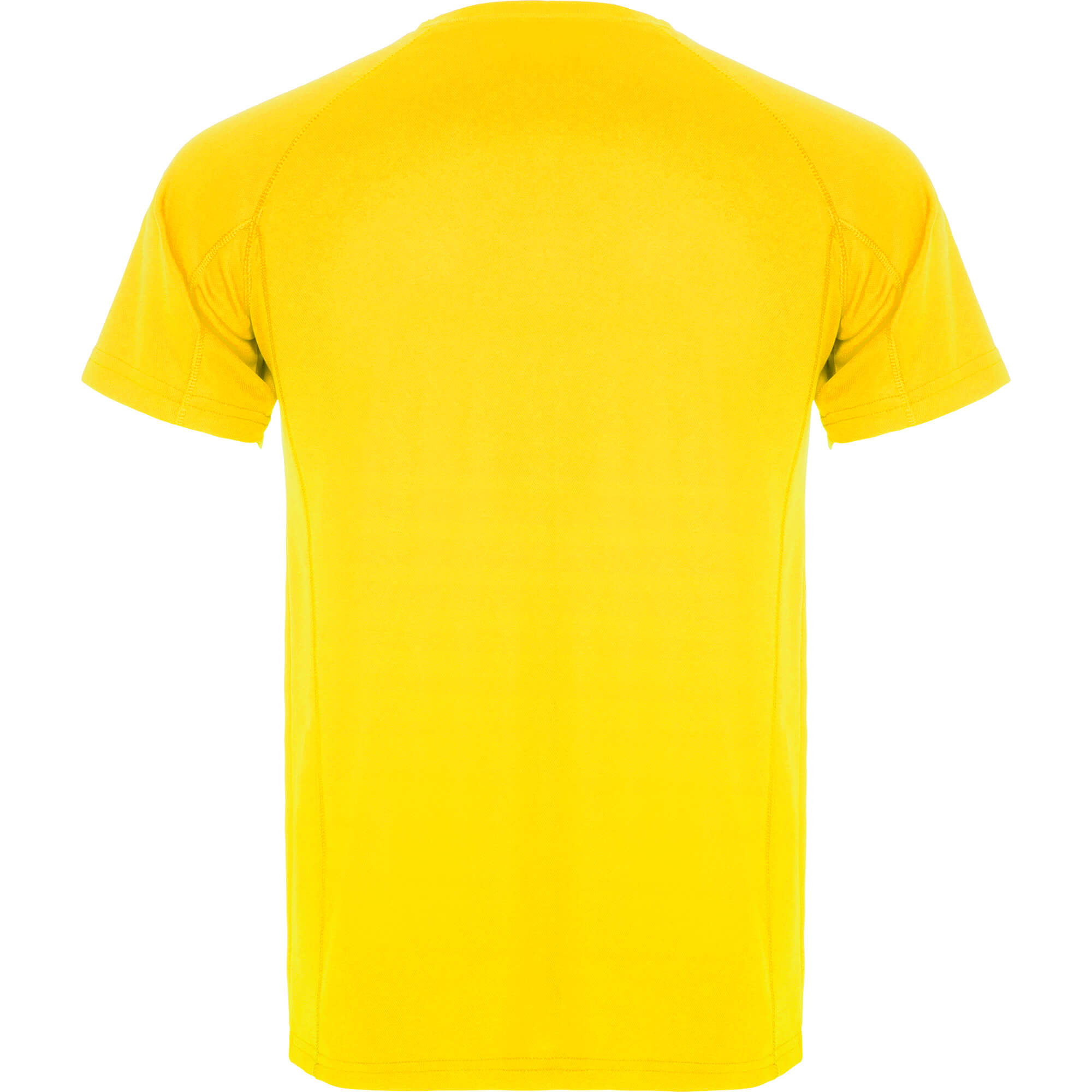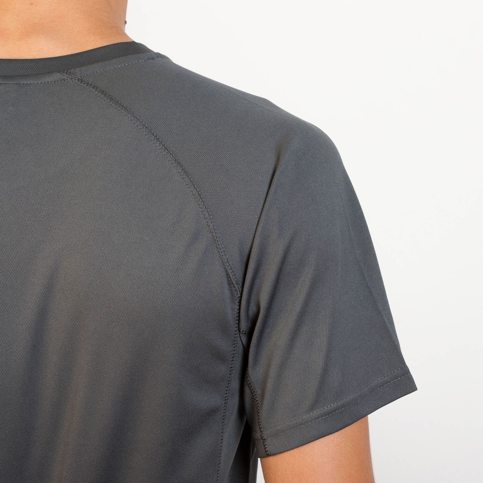 Maglietta girocollo manica corta raglan. 1.- Girocollo con cuciture rinforzate. 2.- Inserto laterale in tono.