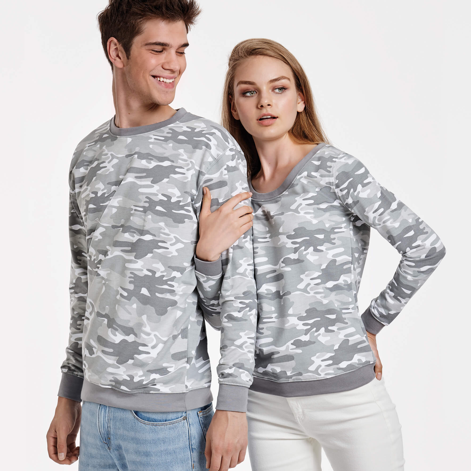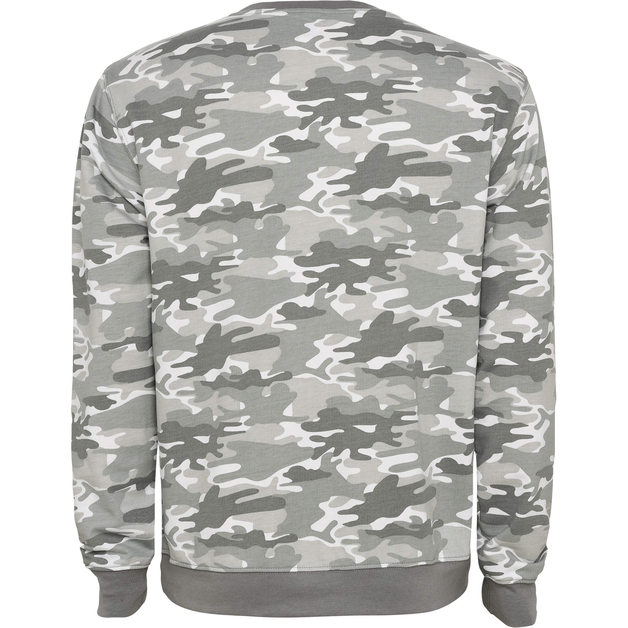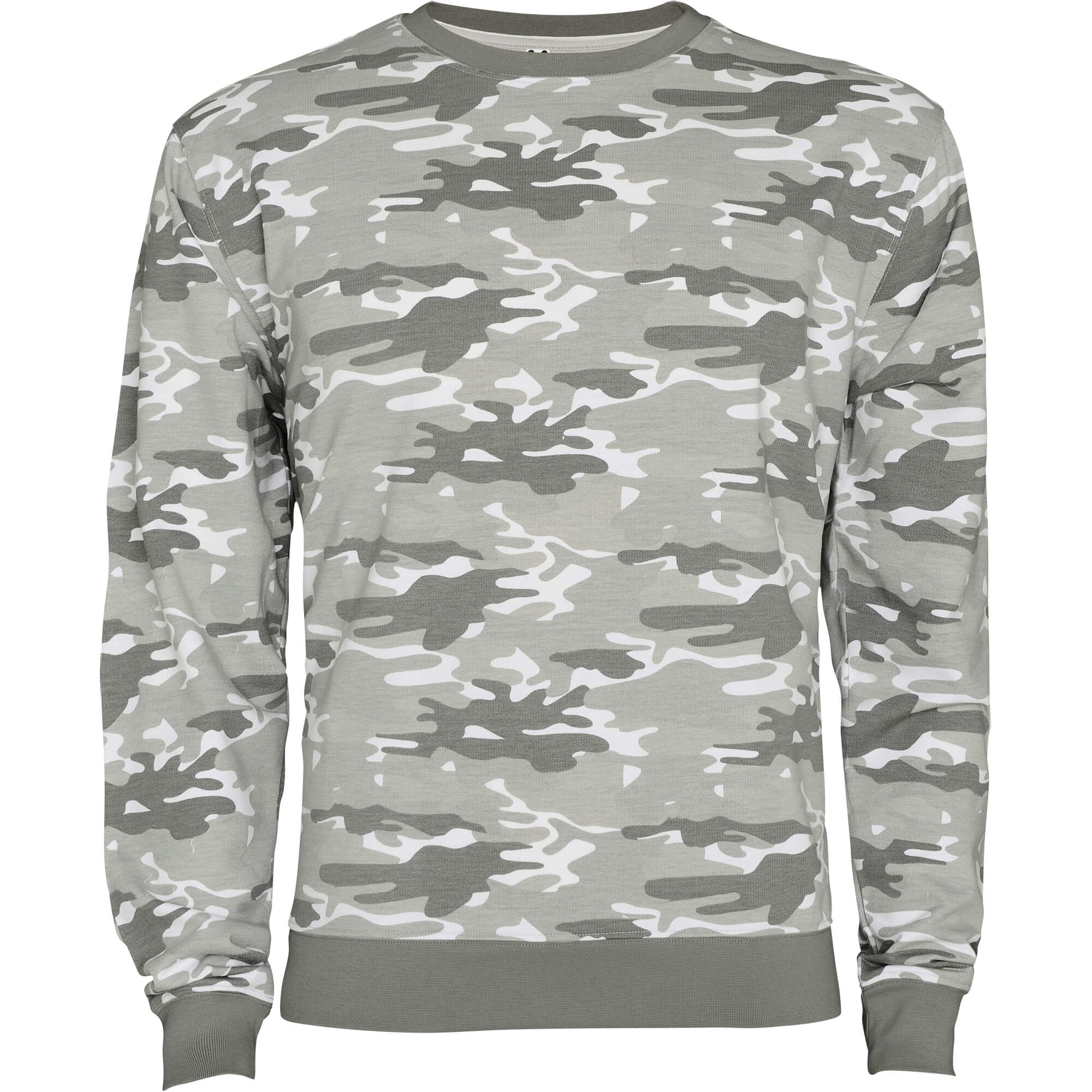 Felpa camouflage, girocollo in costina della stessa tonalità di colore. Girovita e polsini in costina 1x1 di elastane.