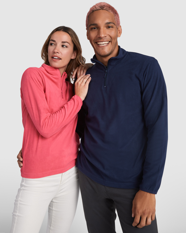 Micropile con collo alto e mezza cerniera riparata nella parte finale, polsini elasticizzati in tono.