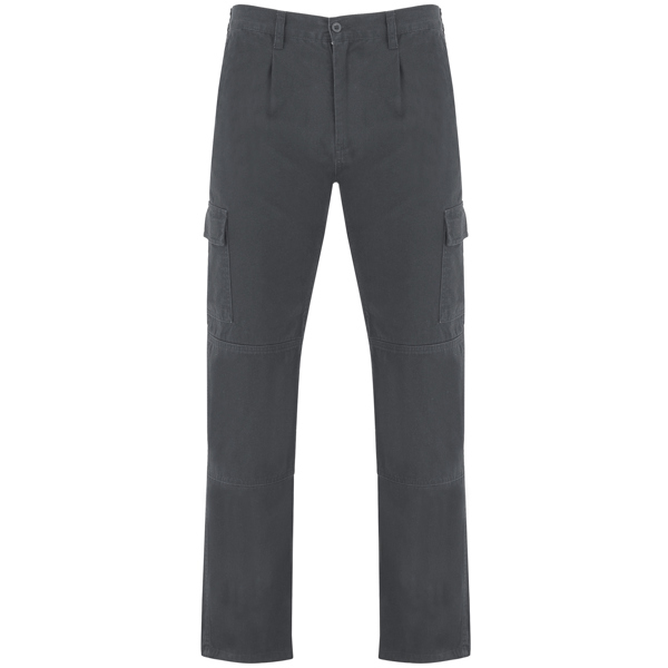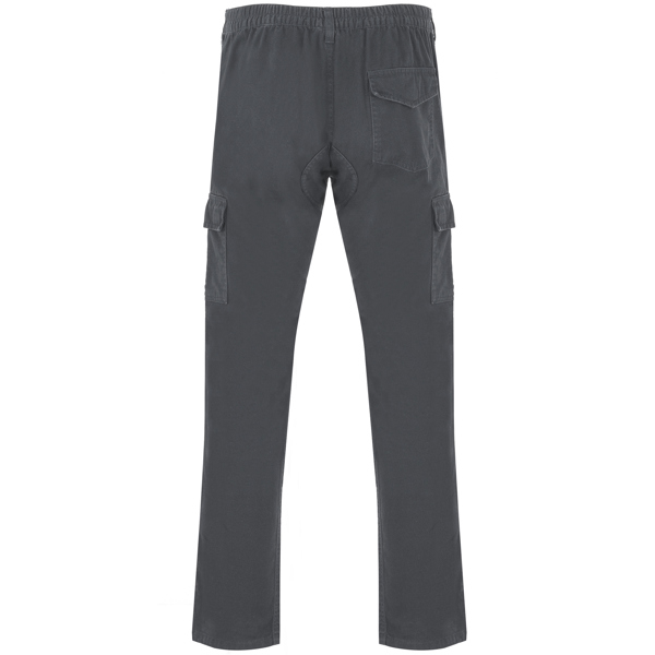 Pantalone lungo in tessuto resistente di cotone: 1. Cinturino elastico regolabile nella parte posteriore. 2. Due tasche frontali. 3. Tasca posteriore con bavero e chiusura in velcro. 4. Due tasche laterali con bavero e chiusura in velcro. 5. Cavallo rinforzato. 6. Doppio tessuto sulle ginocchia.