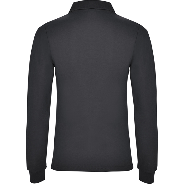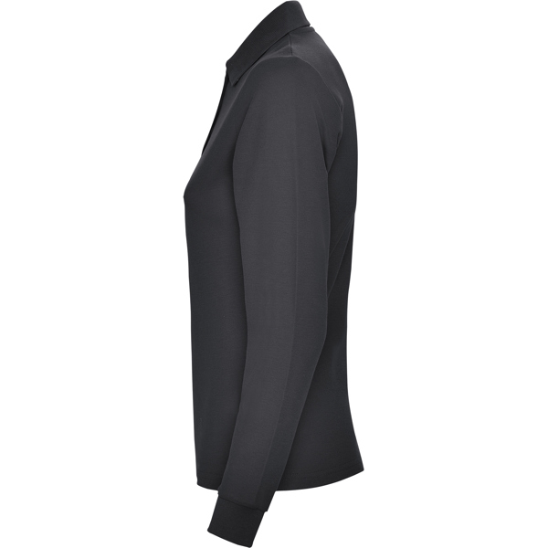 Polo manica lunga, colletto, tre bottoni e polsini in costina 1x1 di elastane. Cuciture ribattute e rinforzate sul colletto, modello sfiancato.
