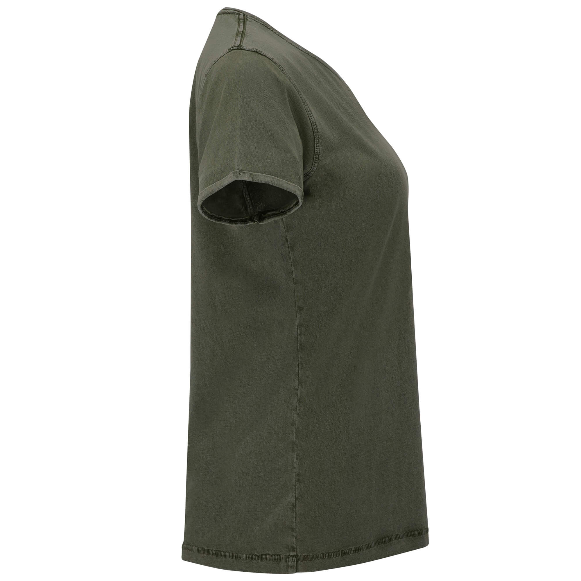 T-shirt manica corta effetto jeans per donna. Girocollo in costina 1x1, con copricuciture di rinforzo interiore da spalla a spalla. Doppia cucitura sul giomanica. Manica con orlo.