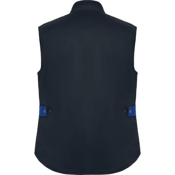 Gilet da lavoro multitasche con collo alto in colori combinati. - - Cerniera centrale con zip e velcro. - - Giacca a vento sulle maniche. - - Una tasca esterna per cellulare sul lato destro, con patta e velcro. - - Due tasche frontali con soffietto, patta e velcro. - - Due portapenne. - - Una tasca interna con velcro. - - Tasca con zip. - - Orlo posteriore con gonna. - - Regolatore autobloccante. - - Pannelli e dettagli sulle spalle a contrasto. - -